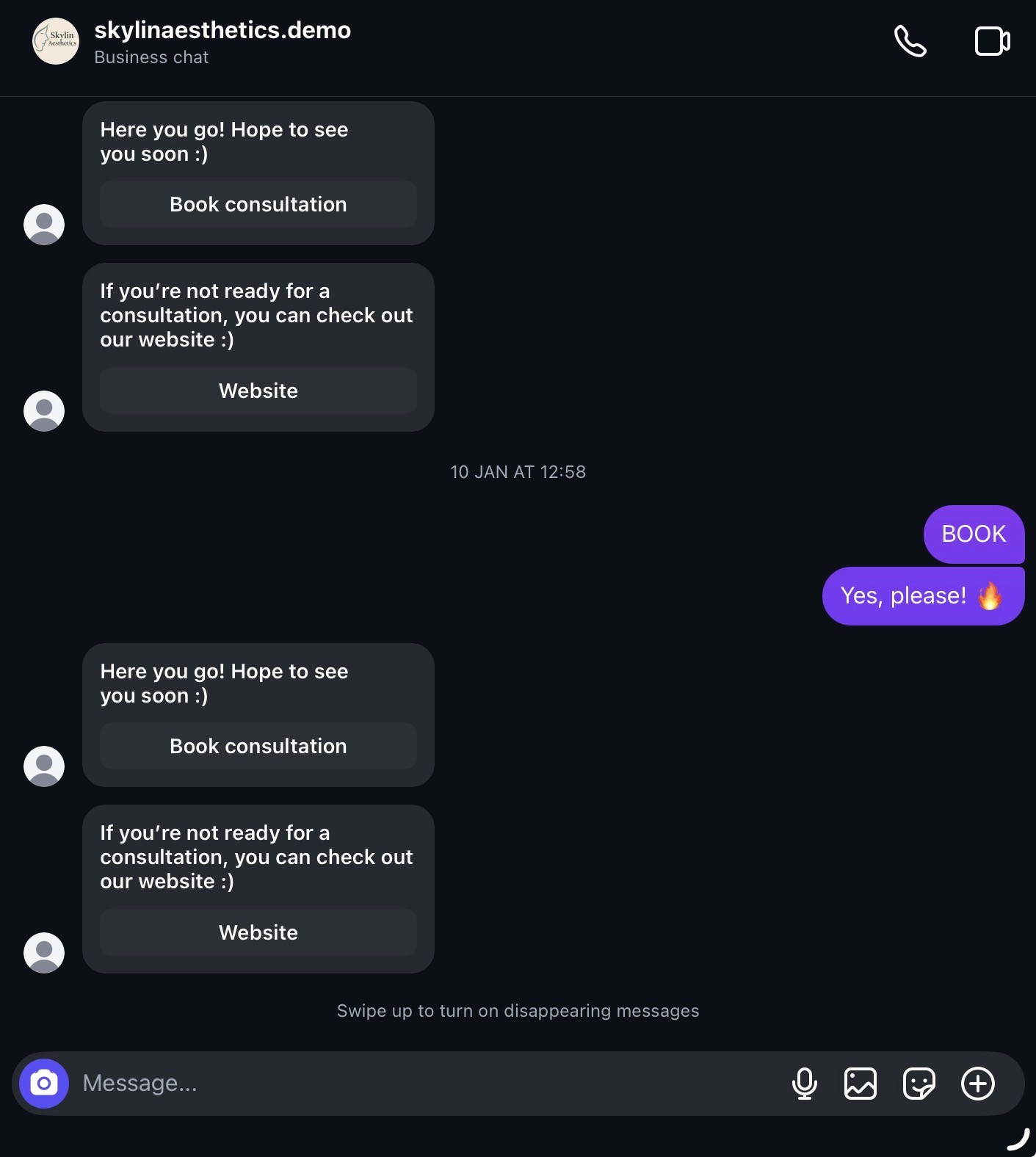 Designed for small to medium sized cosmetic clinics that want simple and reliable automations for their Instagram DMs.